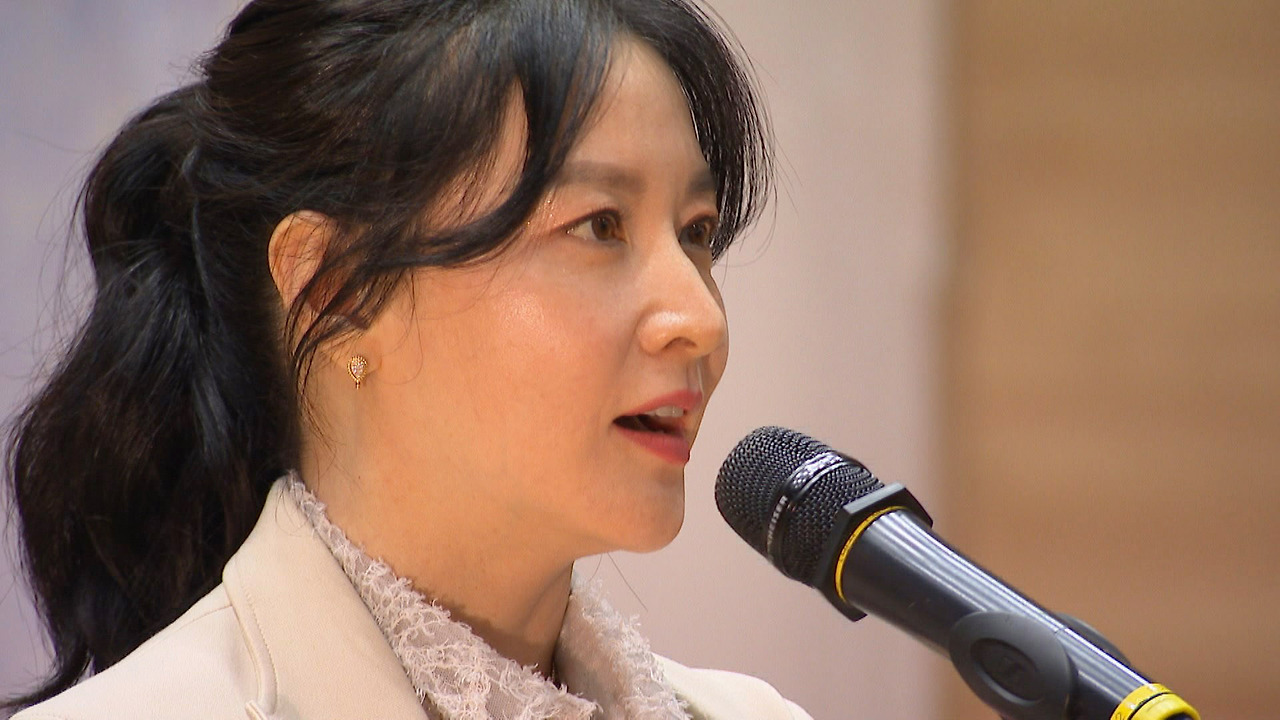 이영애가 발표하는 모습입니다. 그녀의 진지한 모습이 인상적이에요.