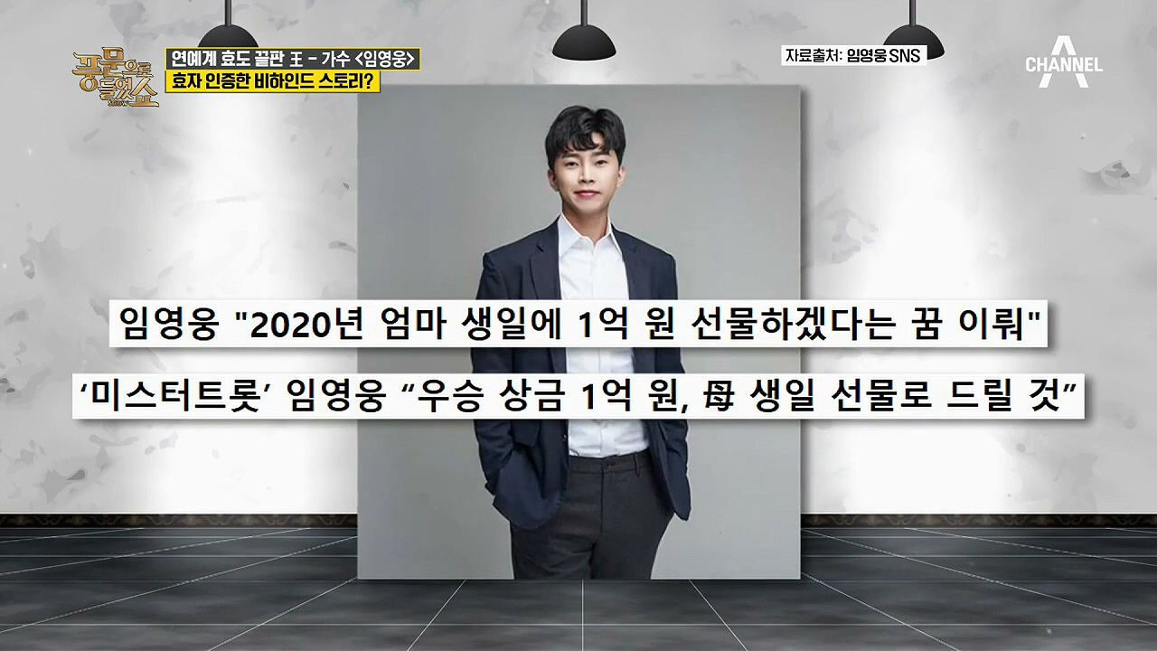 [3] YouTube · 채널아하: 채널A Health & Asset - 어머니 향한 '남다른 효심' 임영웅의 비하인드 스토리 | 행복한 ... (https://www.youtube.com/watch?v=tIQaGHQ491E)